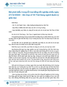 Bài phát biểu trong lễ trao bằng tốt nghiệp chiều ngày 27/3/2022 – tân thạc sĩ Võ Thái Sang ngành Quản lý giáo dục